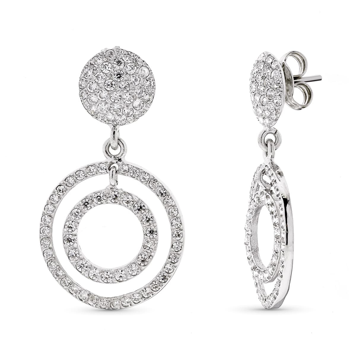 18K PENDIENTES ORO BLANCO LARGOS REDONDOS CON CIRCONITA CIERRE PRESION
