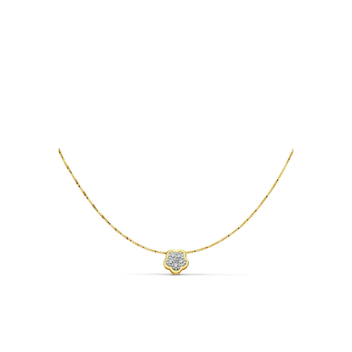 18K COLGANTE AMULETO FLOR 5X5 MM ORO BICOLOR CADENA 42CM