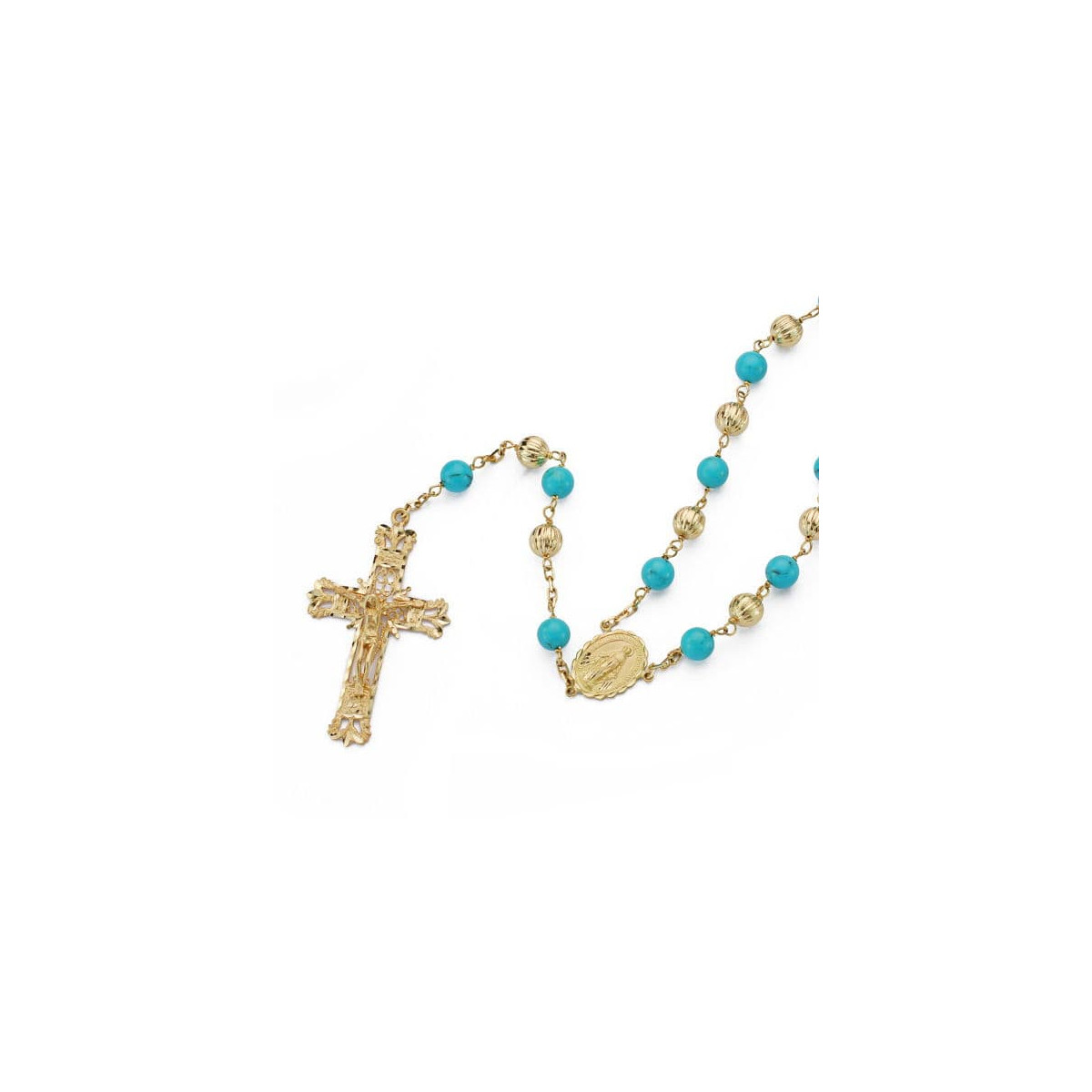 18K ROSARIO ORO AMARILLO BOLAS Y TURQUESAS ORO AMARILLO. 60CM