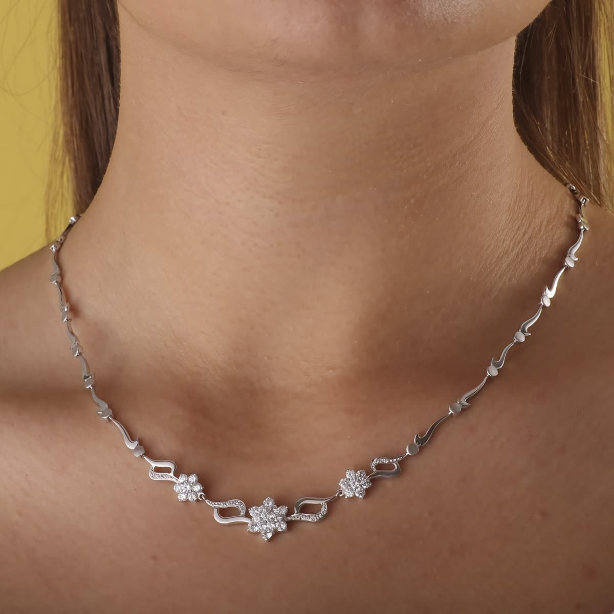 18K GARGANTILLA ORO BLANCO JUEGO NOVIA CENTRO PIÑA CIRCONITA 45CM MOSQUETON