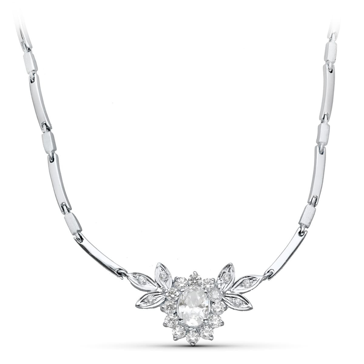 18K GARGANTILLA ORO BLANCO JUEGO NOVIA CENTRO 8X6 MM 45CM CIERRE MOSQUETON