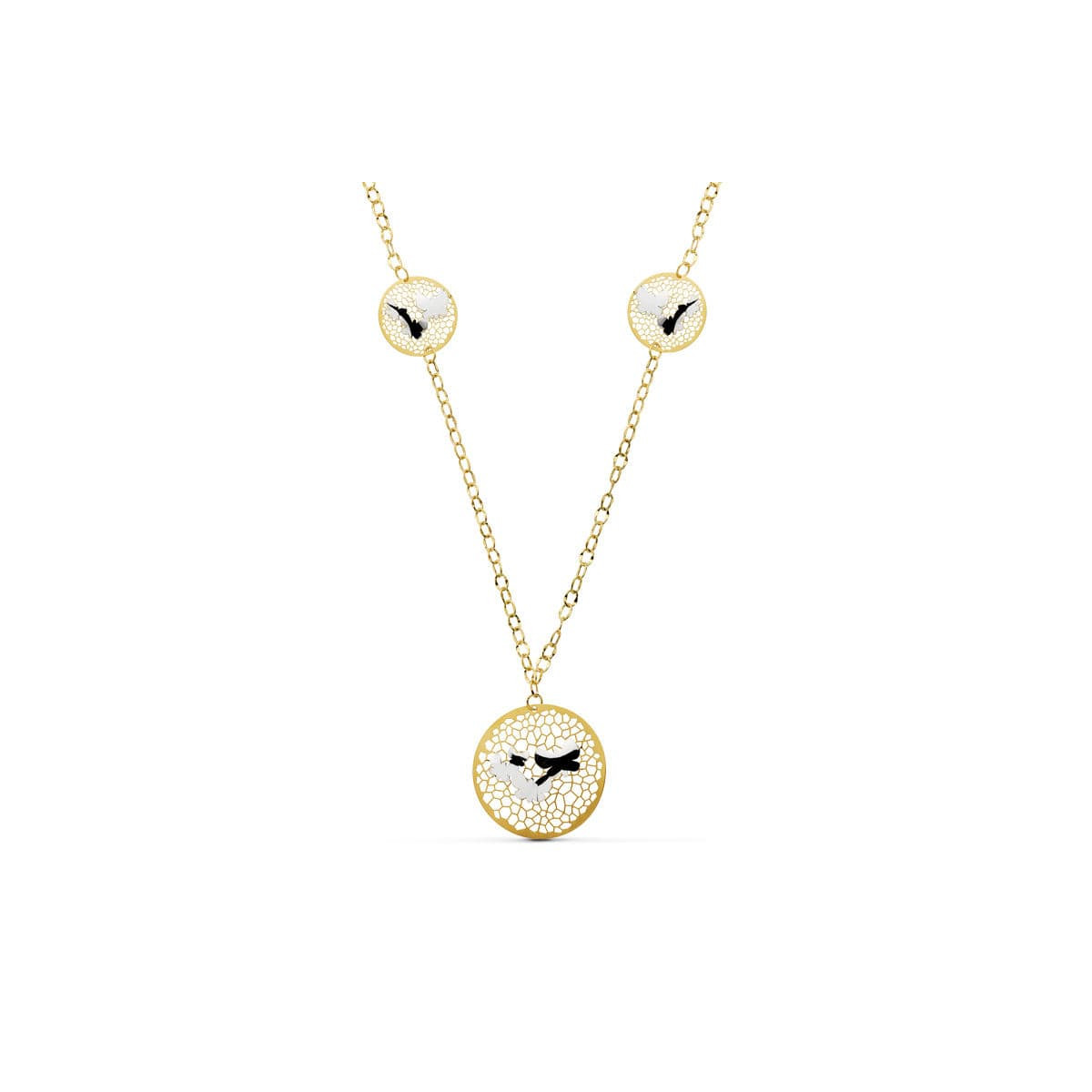 18K GARGANTILLA ORO BICOLOR COLGANTE REDONDO CON MARIPOSAS 47 CM
