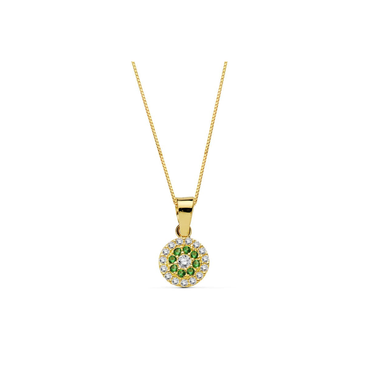 18K GARGANTILLA COLLAR ORO AMARILLO REDONDO PIEDRA VERDE 7 MM CADENA 45CM