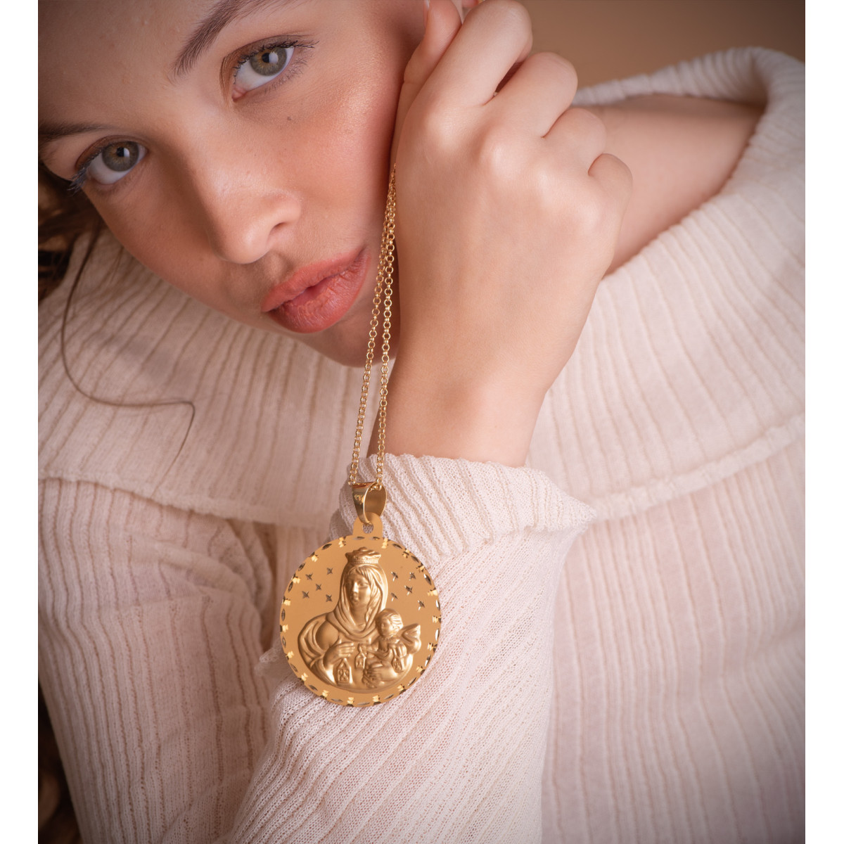 18K MEDALLA ORO AMARILLO VIRGEN DEL CARMEN TALLADA 42 MM