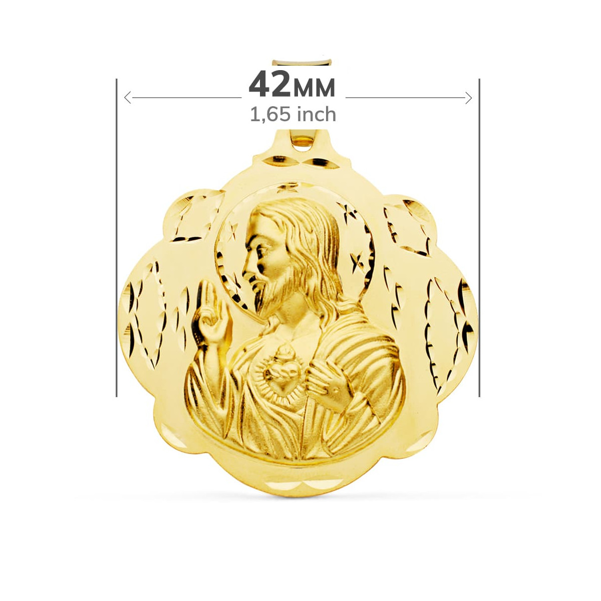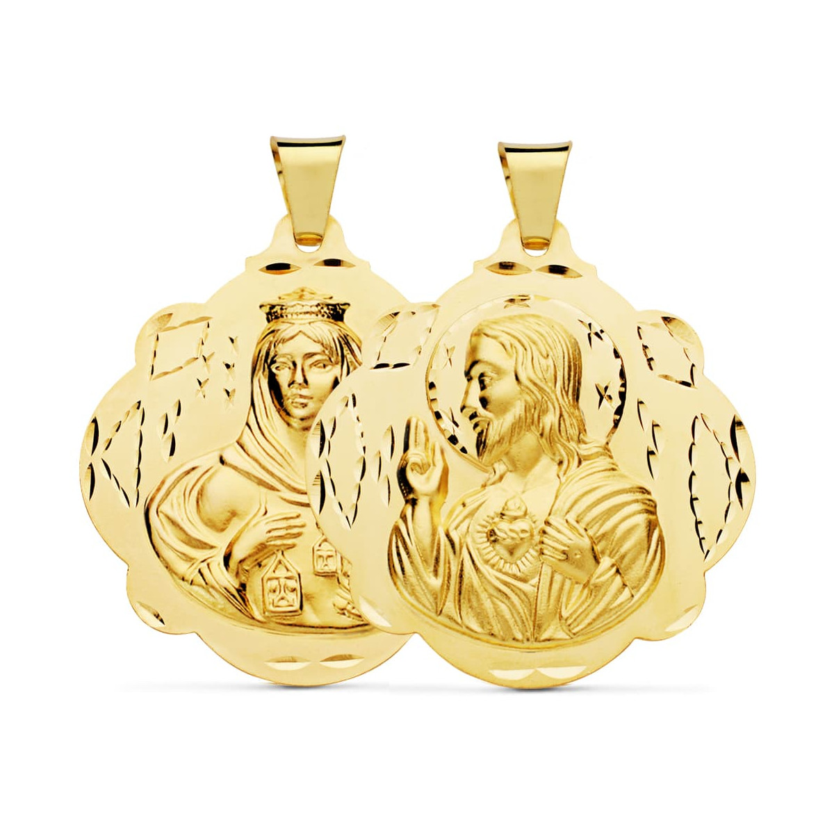 18K ESCAPULARIO ORO AMARILLO PANDERETA VIRGEN DEL CARMEN Y CORAZON DE JESUS 42 MM