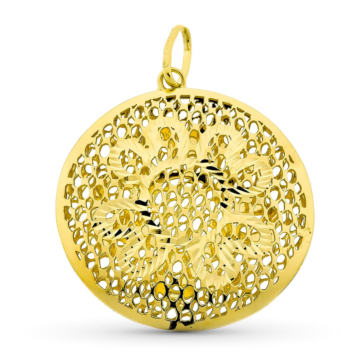 18K COLGANTE ORO AMARILLO CIRCULO CALADO 38X35 MM