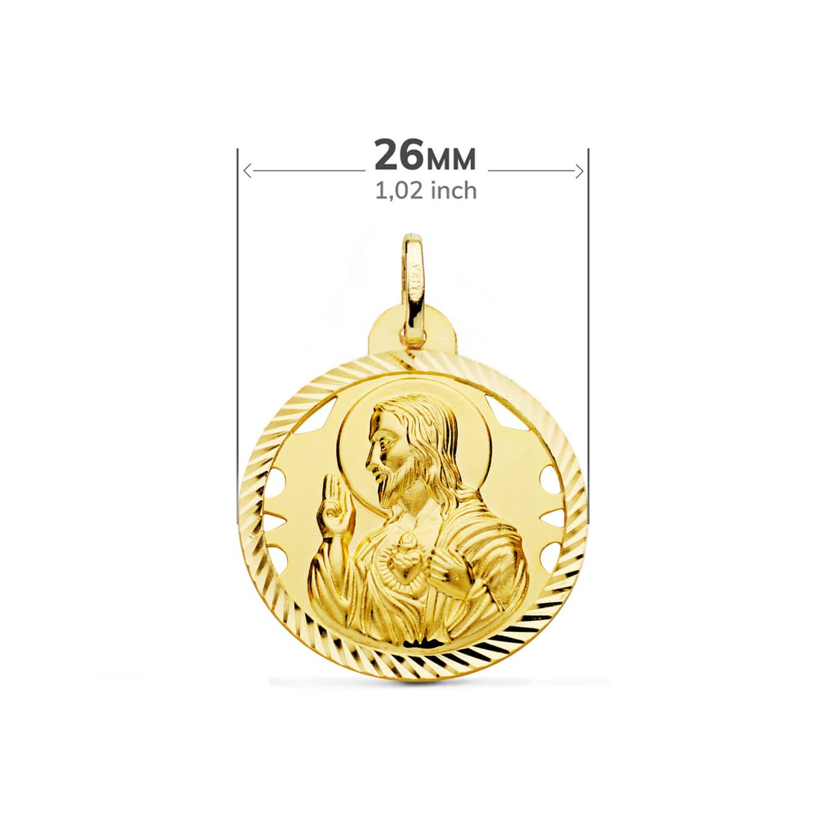 18K ESCAPULARIO ORO AMARILLO HELICE CALADO VIRGEN CARMEN Y CORAZON DE JESUS 26 MM