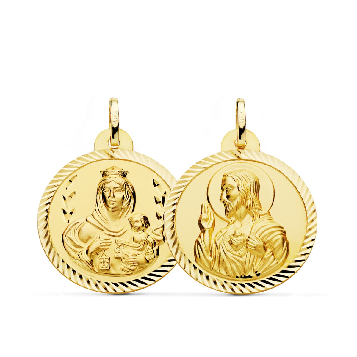 18K ESCAPULARIO ORO AMARILLO HELICE VIRGEN DEL CARMEN CORAZON DE JESUS 26 MM