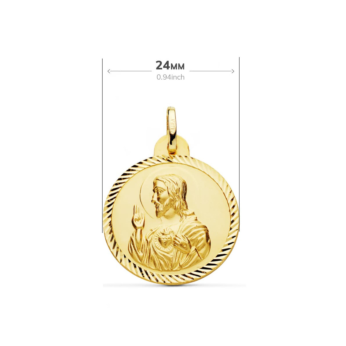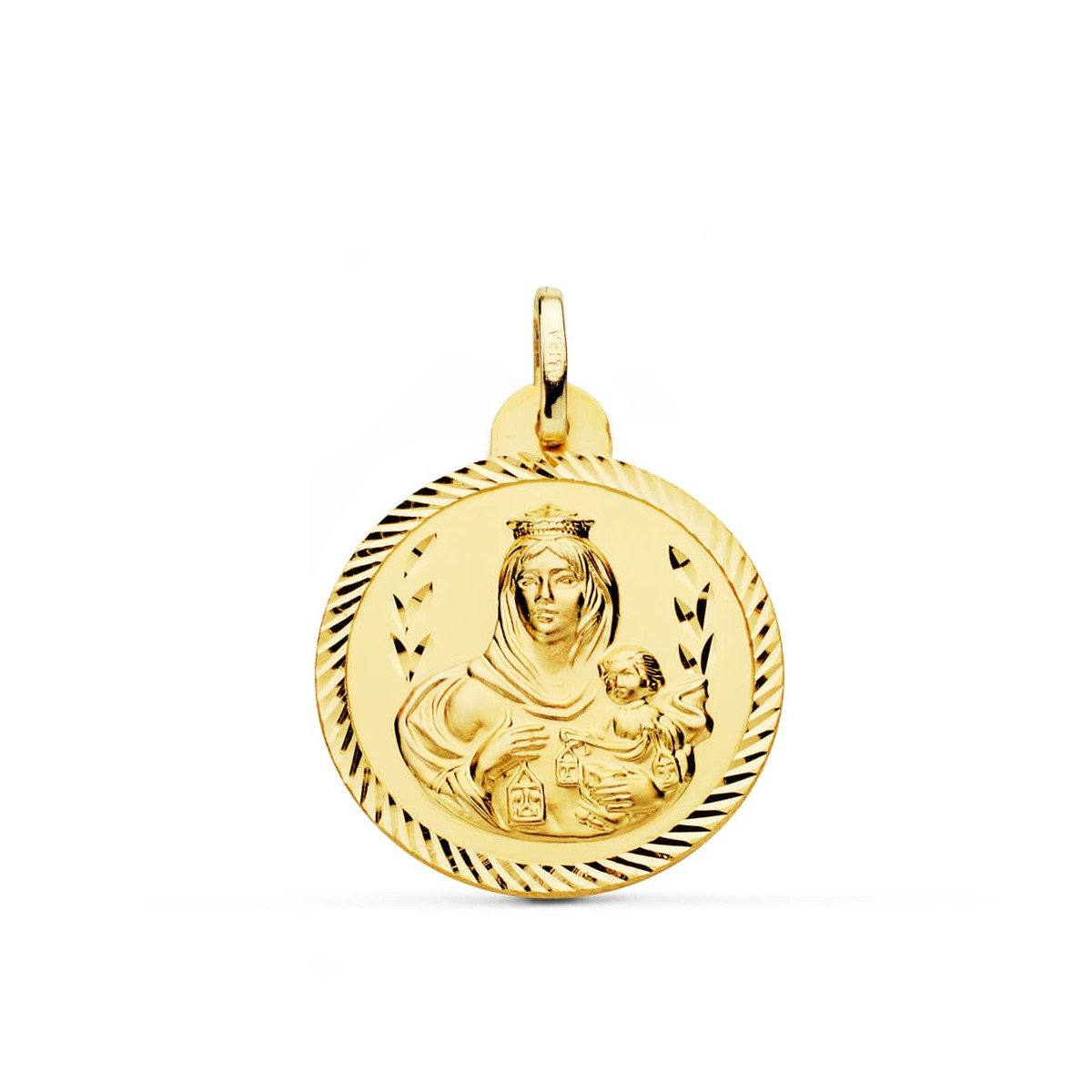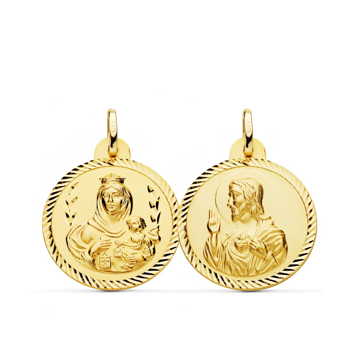 18K ESCAPULARIO ORO AMARILLO HELICE VIRGEN CARMEN Y CORAZON DE JESUS 24 MM