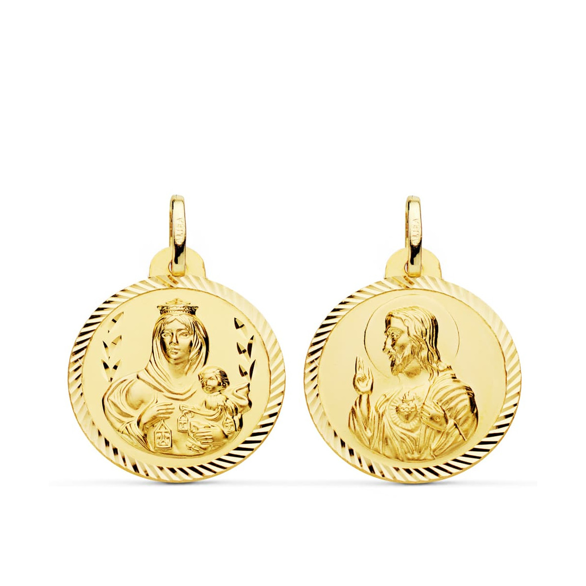 18K ESCAPULARIO ORO AMARILLO HELICE VIRGEN DEL CARMEN Y CORAZON DE JESUS. 22 MM