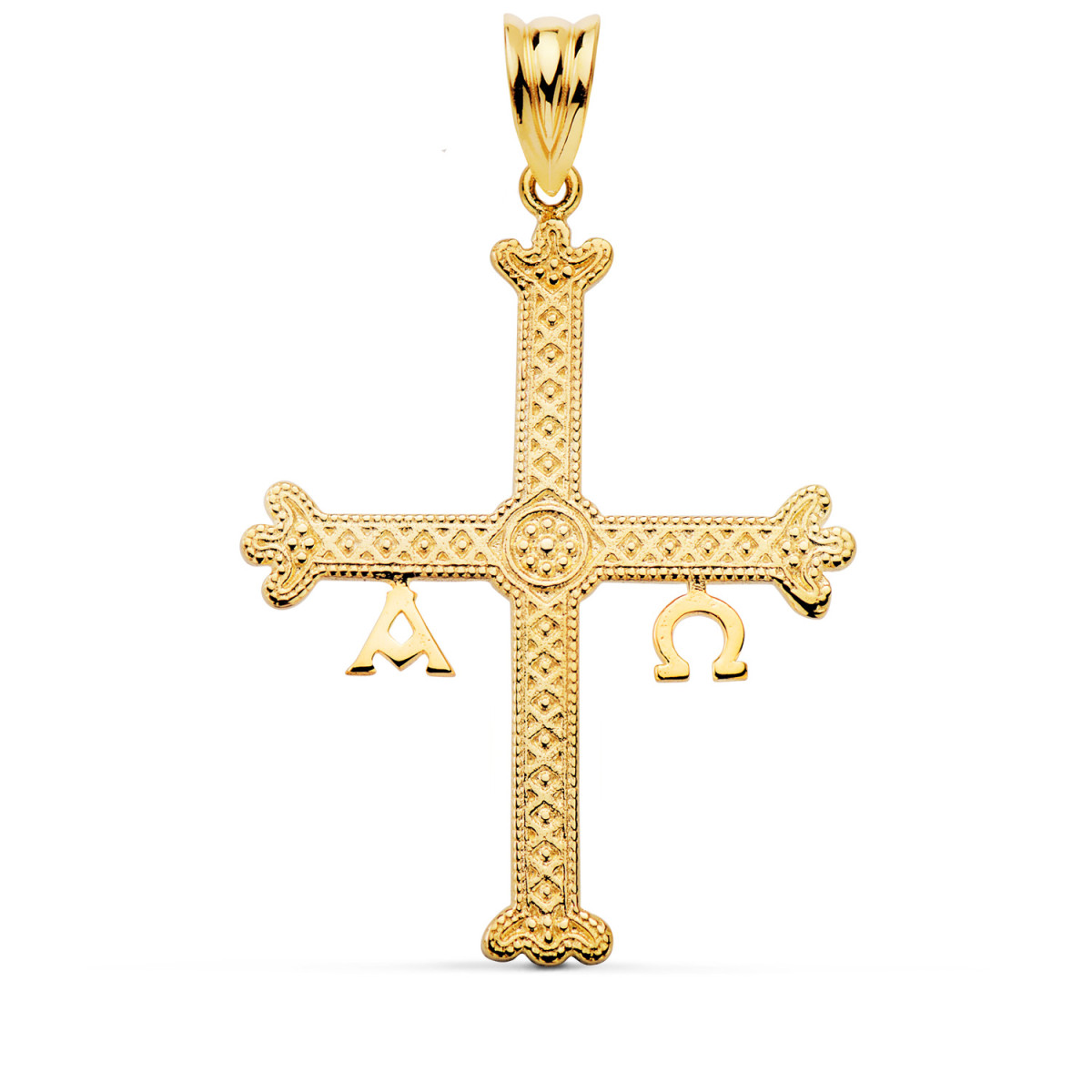 18K CRUZ DE COVADONGA O VICTORIA ORO AMARILLO DETALLES RELIEVE. 37 X 28 MM
