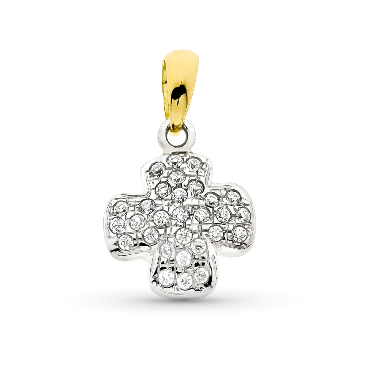 18K CRUZ ORO BICOLOR CIRCONITA 16X13 MM