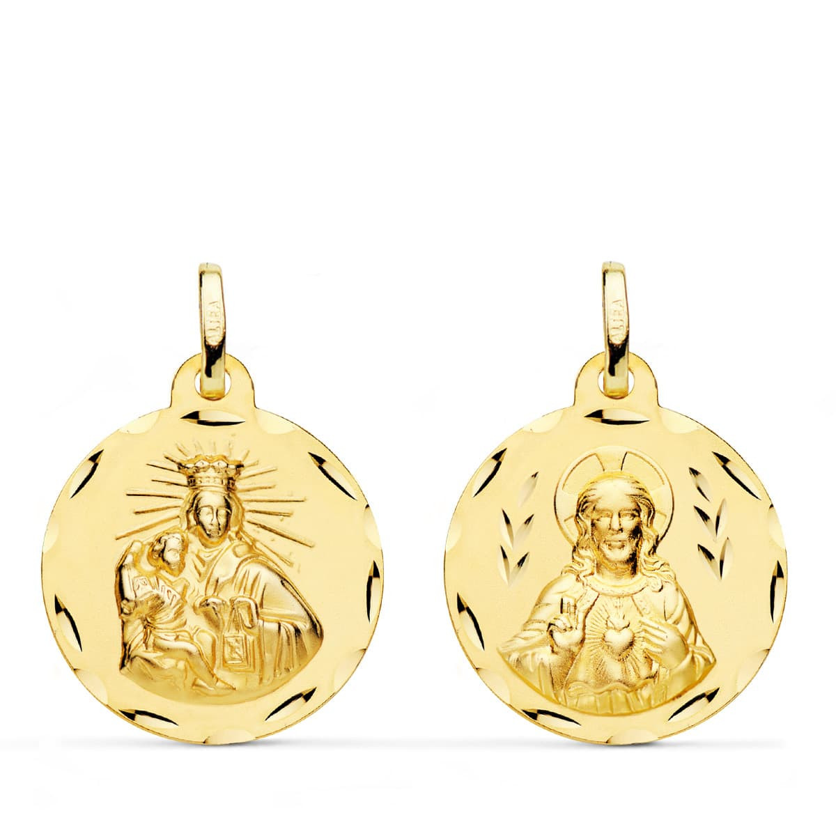 18K ESCAPULARIO ORO AMARILLO CORAZON DE JESUS Y VIRGEN DEL CARMEN TALLADO ORO AMARILLO 20 MM