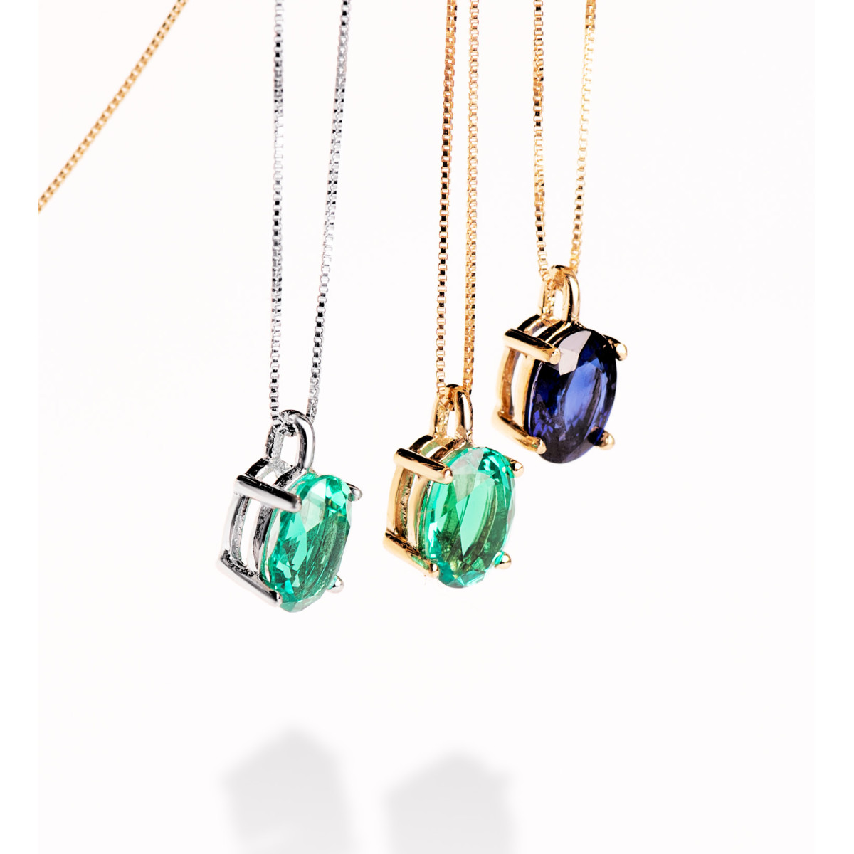 18K COLGANTE CON CADENA ORO AMARILLO ESMERALDA RECRISTALIZADA 7X5 MM 0,79 QT. CADENA 42-3 CM