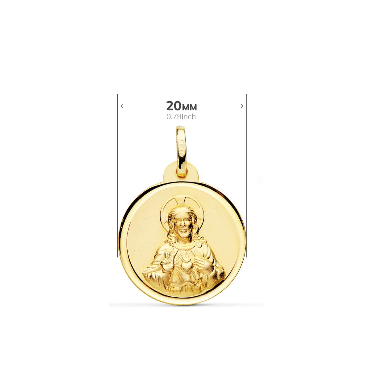 18K ESCAPULARIO ORO AMARILLO VIRGEN DEL CARMEN CORAZON JESUS BISEL 20 MM