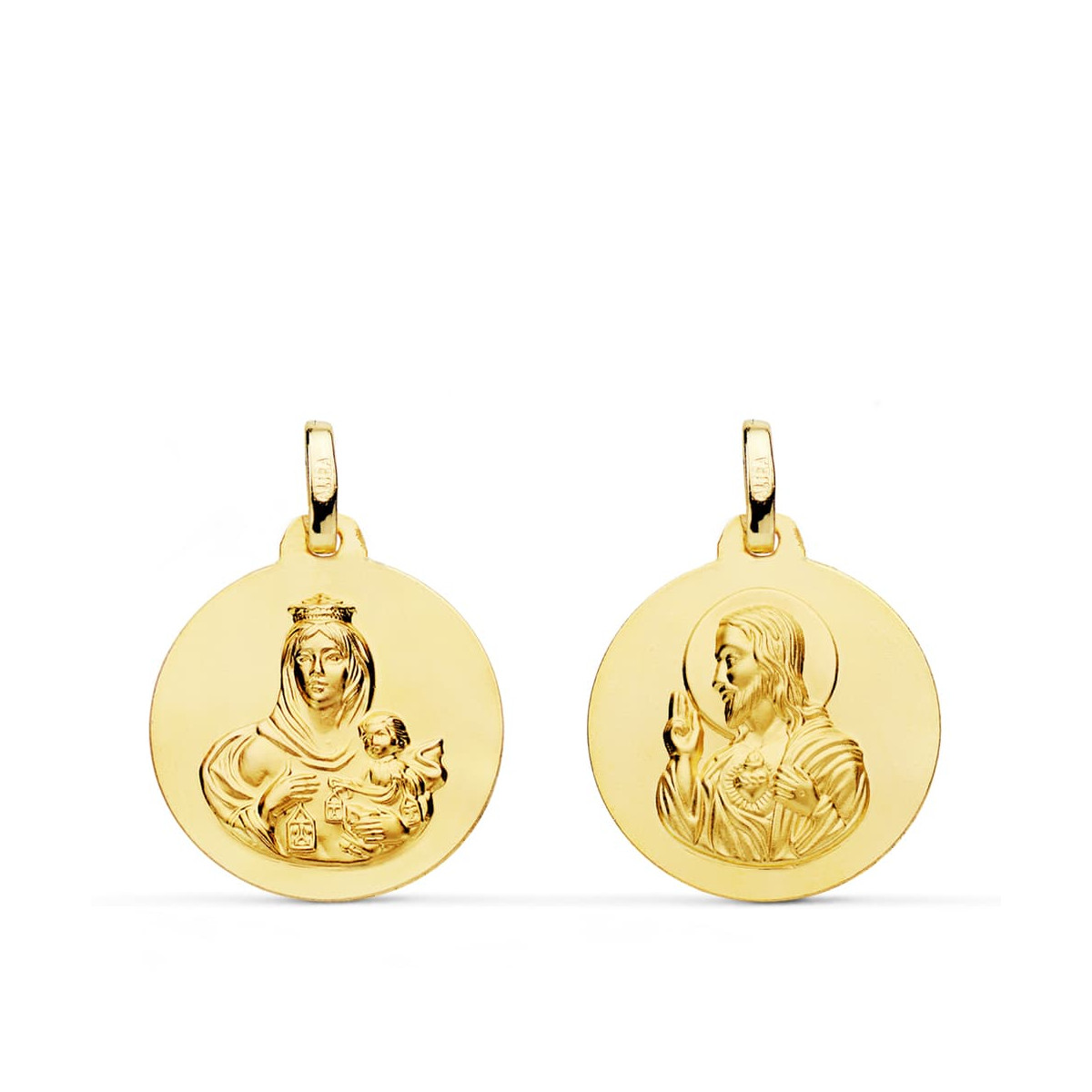 18K ESCAPULARIO ORO AMARILLO LISO VIRGEN DEL CARMEN CORAZON DE JESUS 18 MM