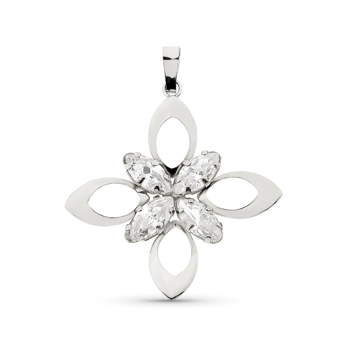 18K COLGANTE ORO BLANCO FLOR PIEDRAS 32X29 MM 1.95 GR