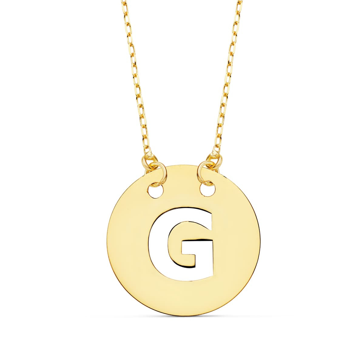 18K COLGANTE ORO AMARILLO LETRA " G " 15 MM CADENA FORZADA 42CM