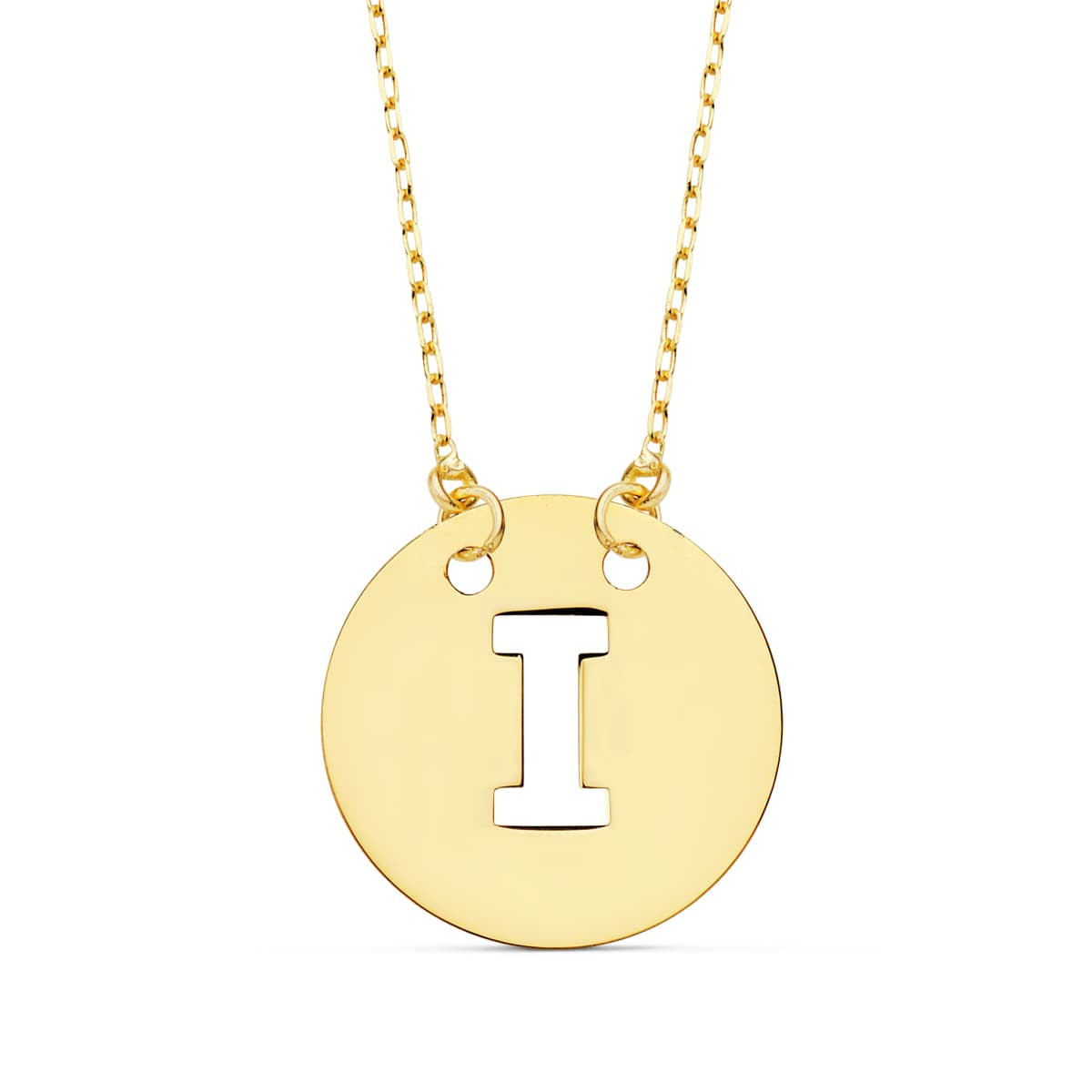 18K COLGANTE ORO AMARILLO LETRA " I " 15 MM CADENA FORZADA 42CM