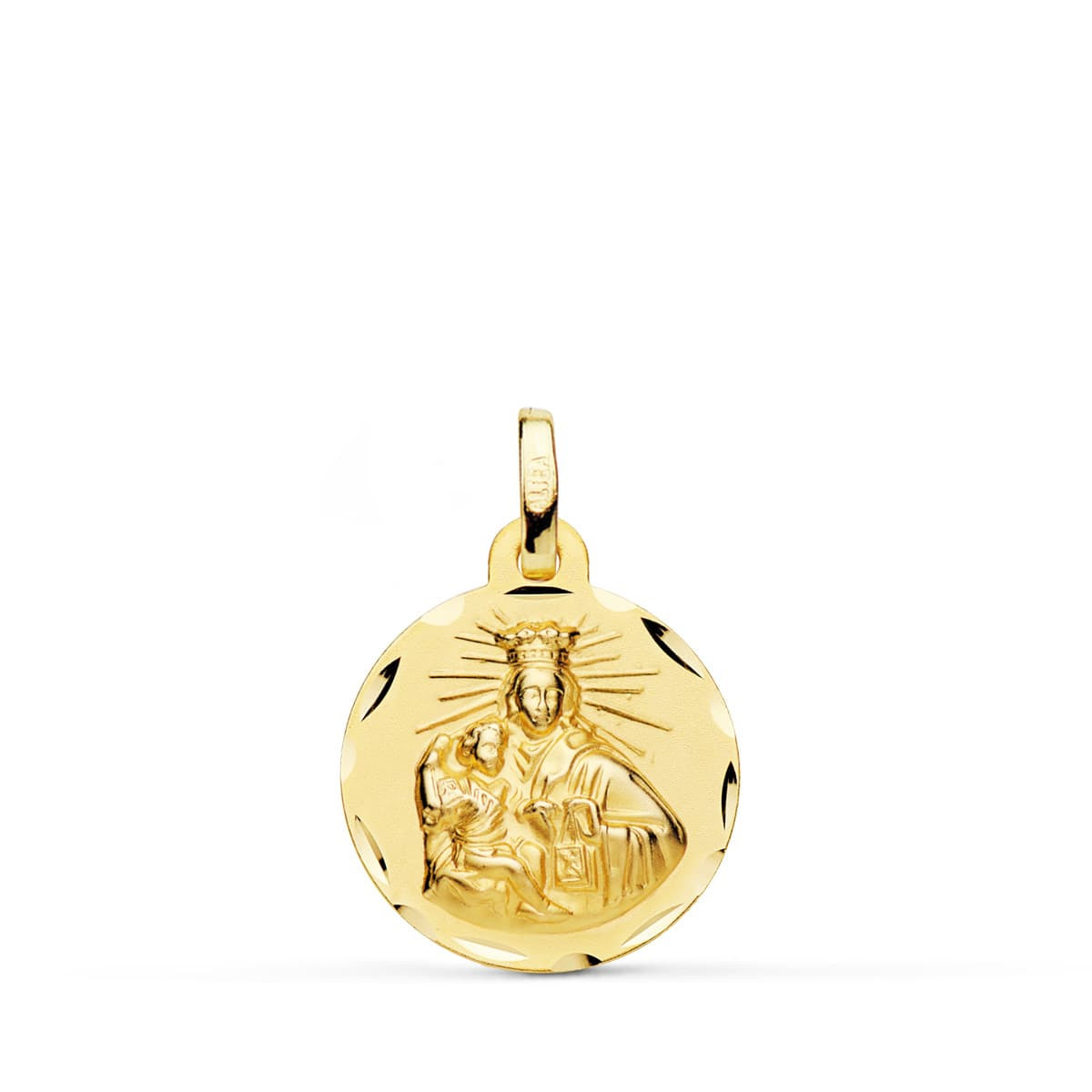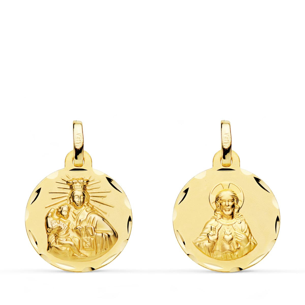 18K ESCAPULARIO ORO AMARILLO CORAZON DE JESUS Y VIRGEN DEL CARMEN ORO AMARILLO TALLADO 16 MM