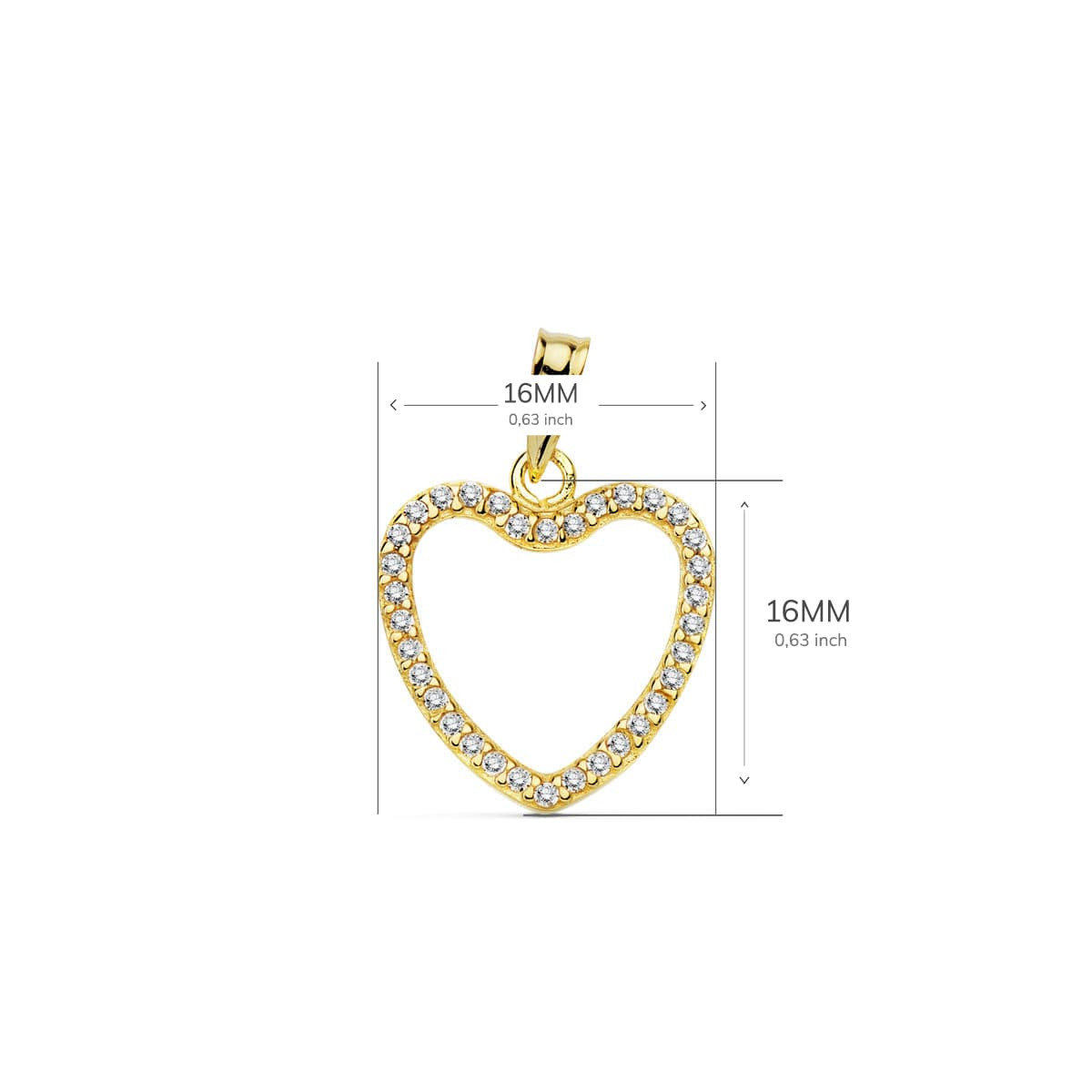 18K COLGANTE ORO AMARILLO CORAZON CIRCONITA 16X16 MM
