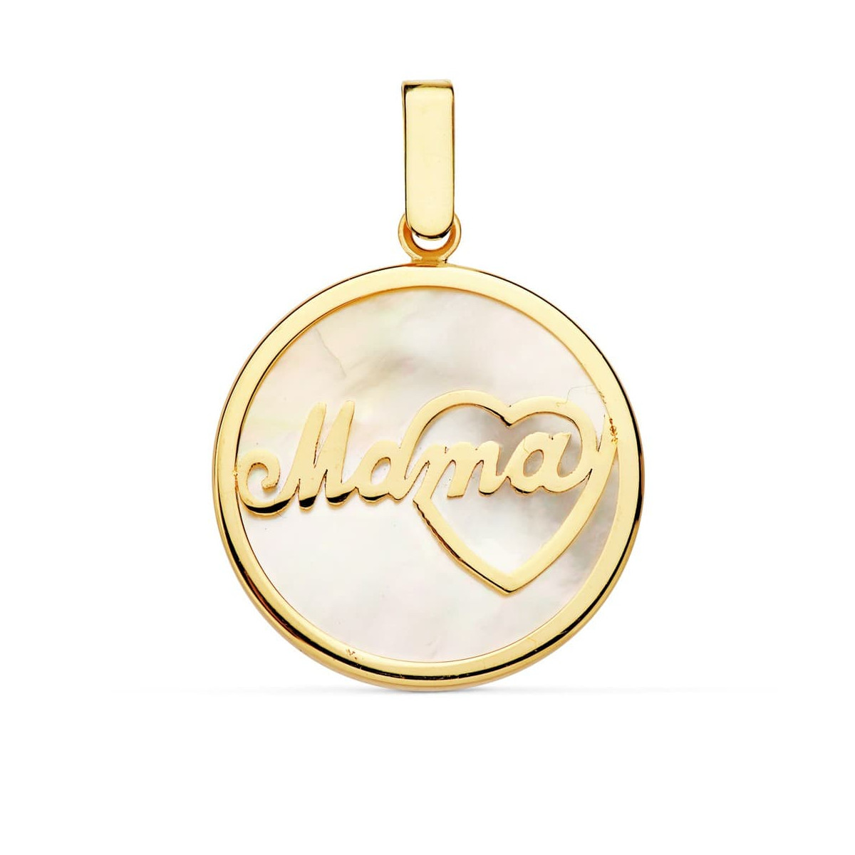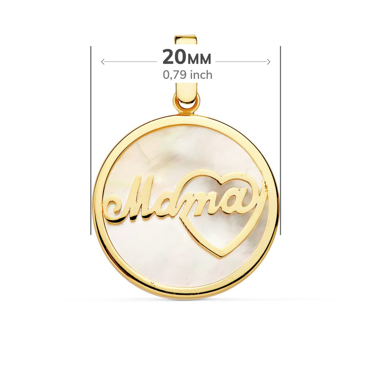18K COLGANTE ORO AMARILLO NACAR MAMA CORAZON 20 MM