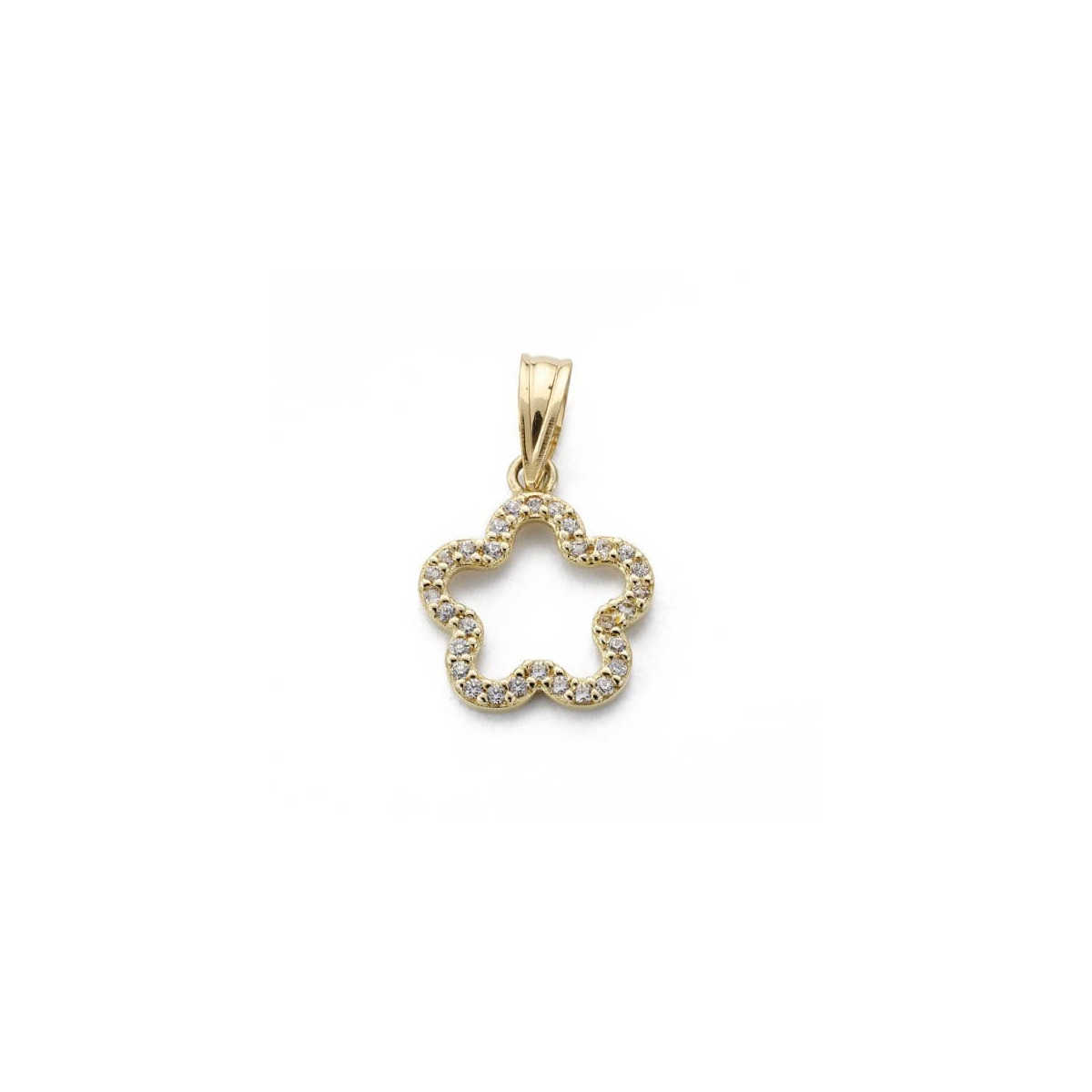 18K COLGANTE AMULETO ORO AMARILLO FLOR CIRCONITA 14X12 MM