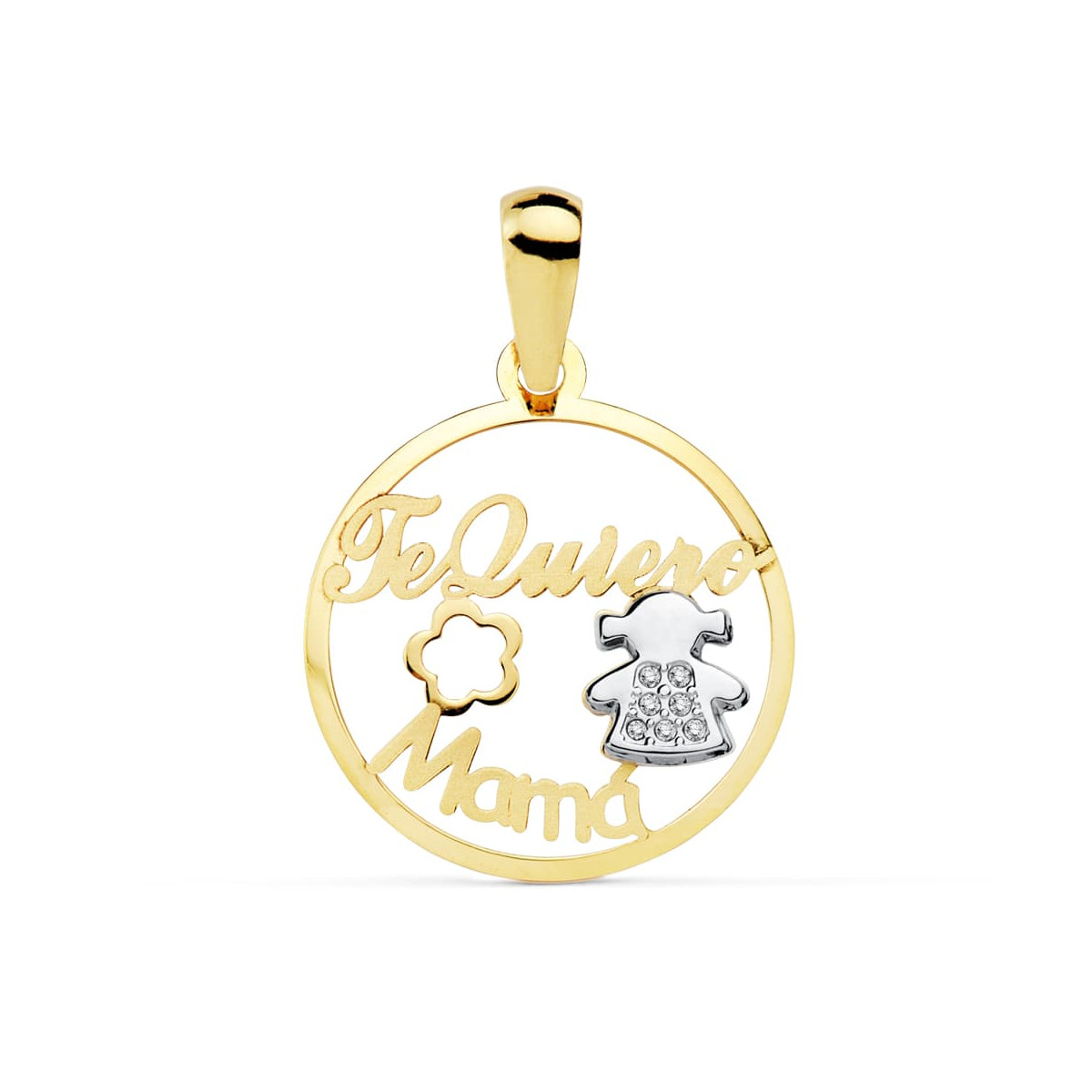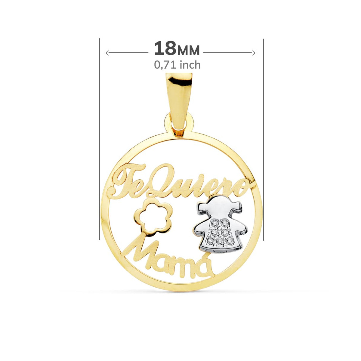 18K COLGANTE MAMA BICOLOR NIÑA Y FLOR 18 MM
