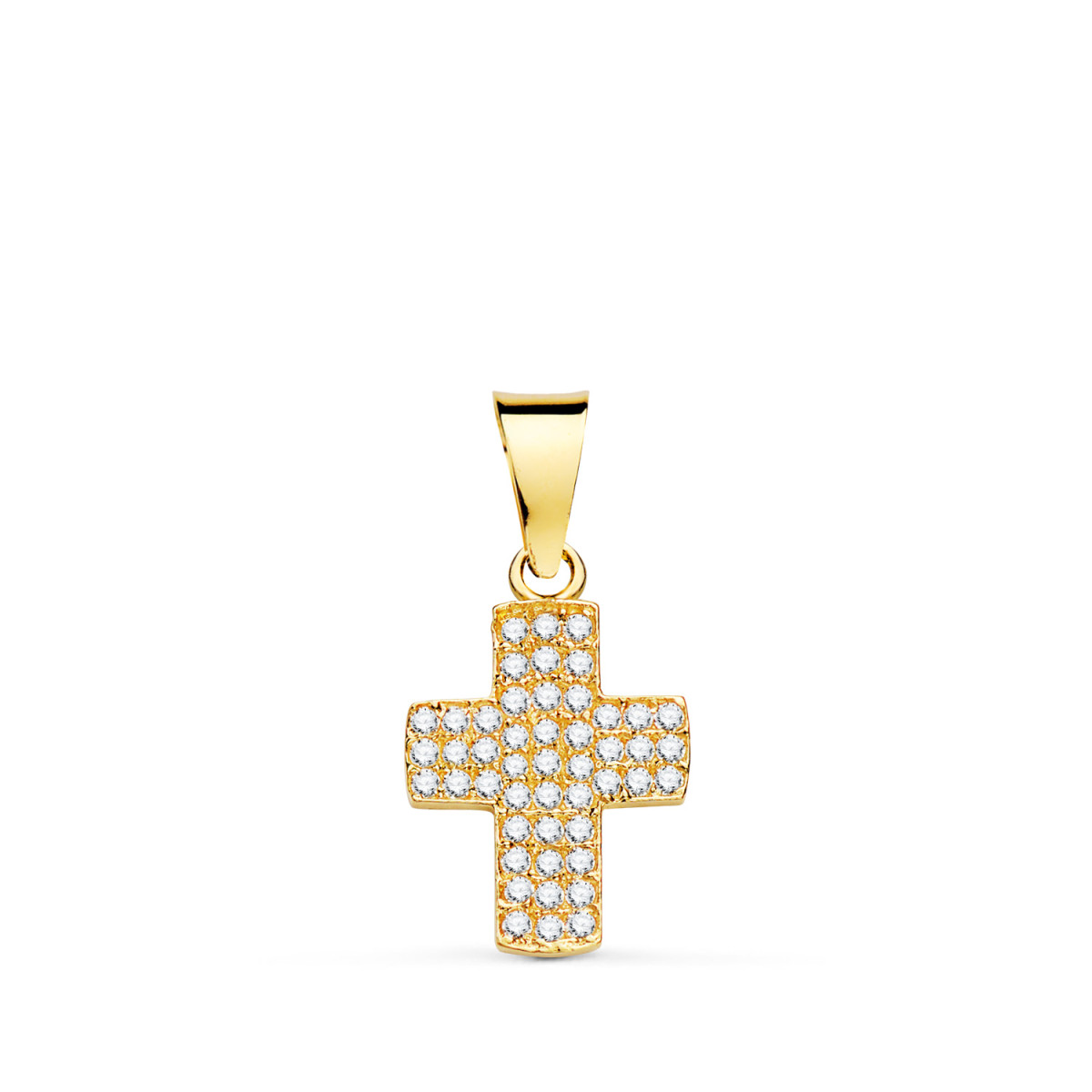 18K CRUZ ORO AMARILLO CON CIRCONITA BLANCAS. 14,5 X 9,5 MM