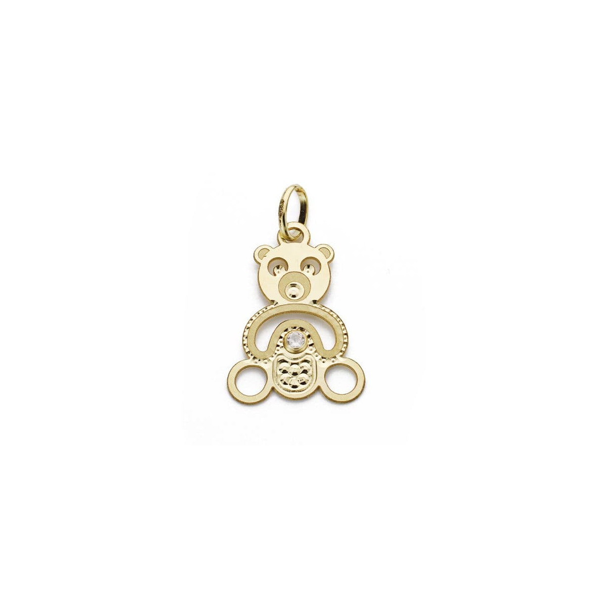18K COLGANTE AMULETO ORO AMARILLO OSO CALADO CIRCONITA 19X13MM