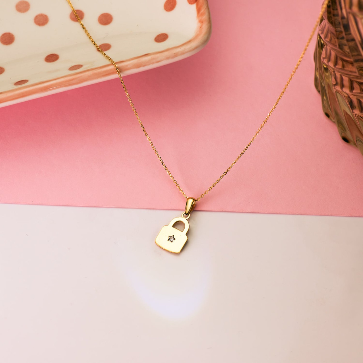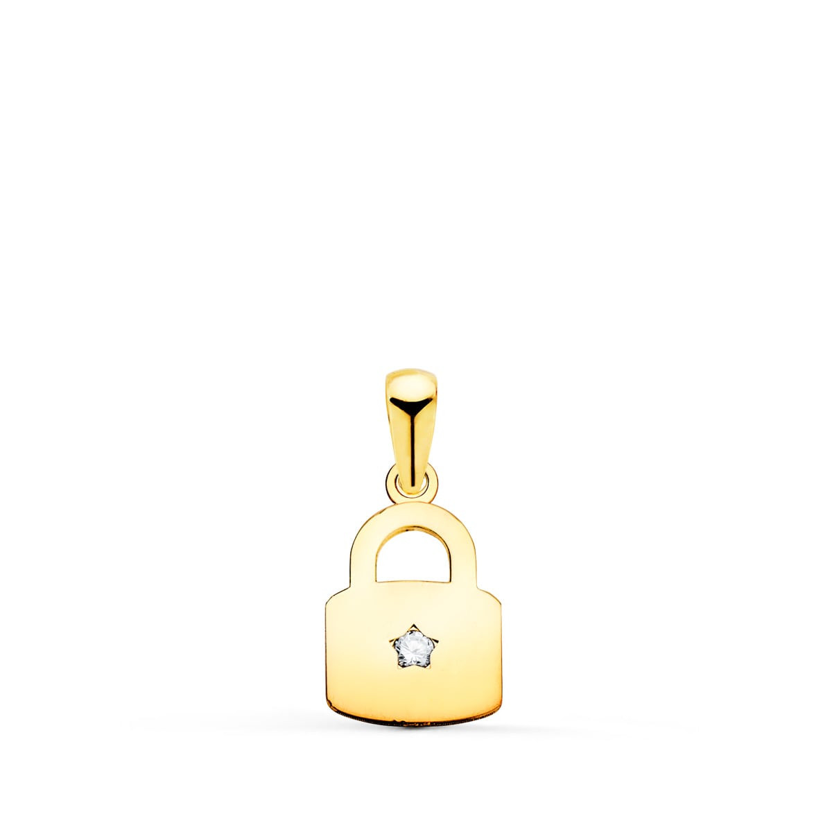 18K COLGANTE AMULETO ORO AMARILLO CANDADO EN BRILLO CON CIRCONITA 14 X 9 MM