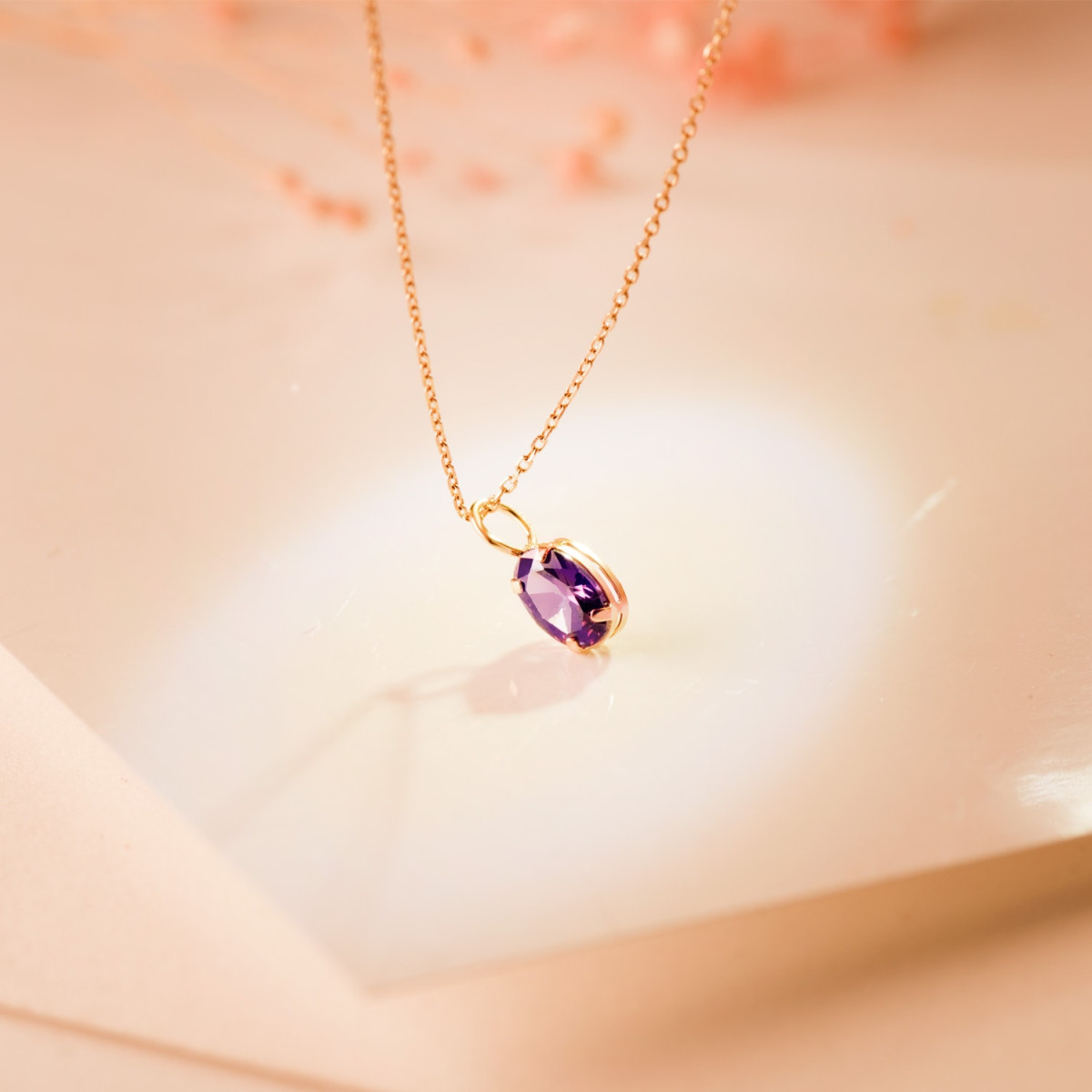 18K COLGANTE ORO AMARILLO OVAL PIEDRA COLOR AMATISTA 7 X 5 MM.