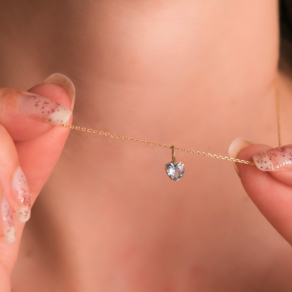 18K COLGANTE ORO AMARILLO CORAZON PIEDRA COLOR AGUAMARINA 5 X 5 MM.