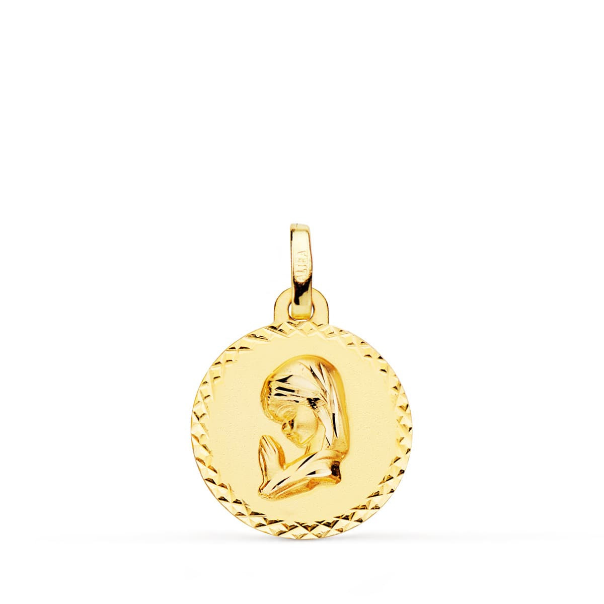 18K MEDALLA ORO AMARILLO VIRGEN NIÑA TALLA CRUZADA 16 MM