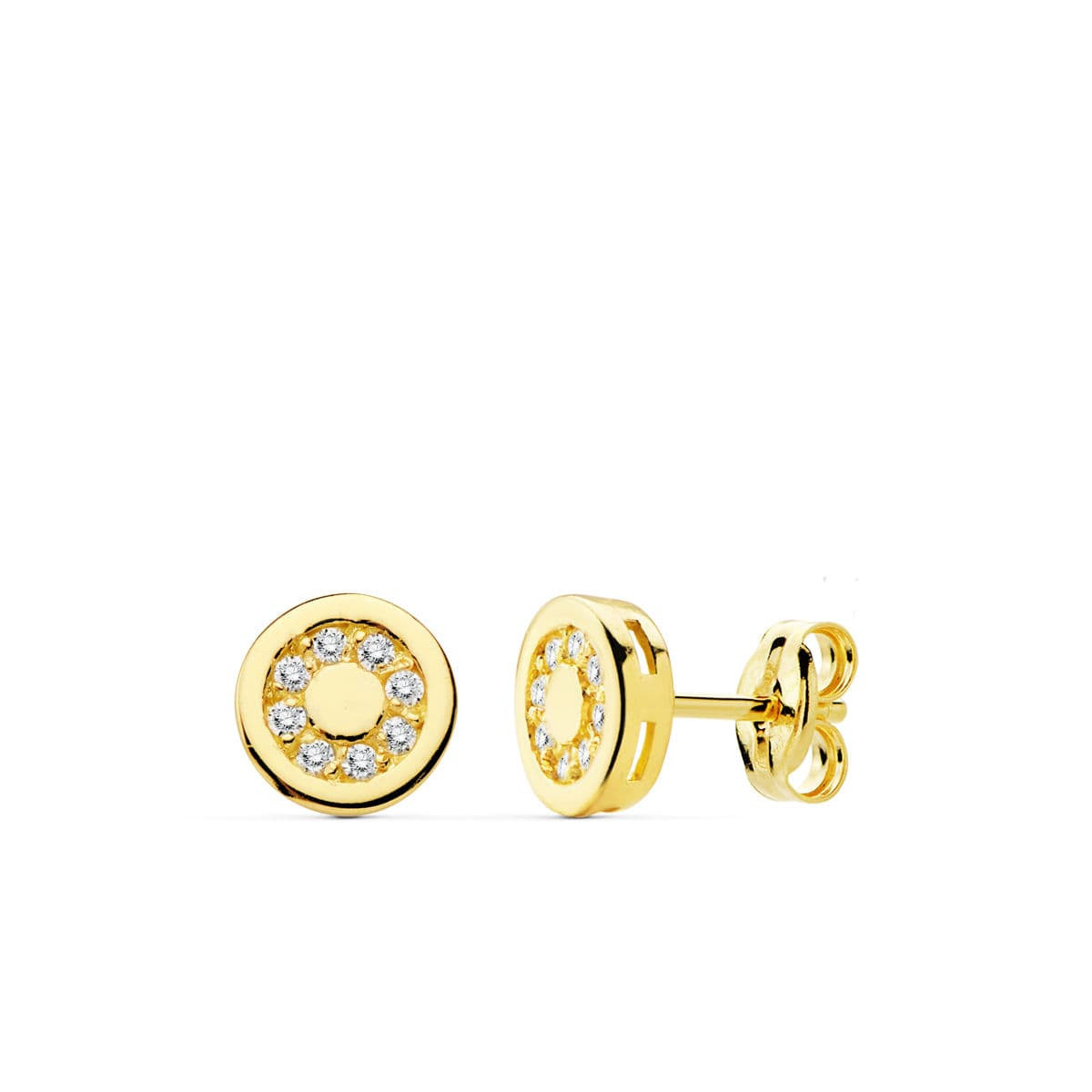 18K PENDIENTES ORO AMARILLO REDONDOS CIRCONITA 7 MM CIERRE PRESION