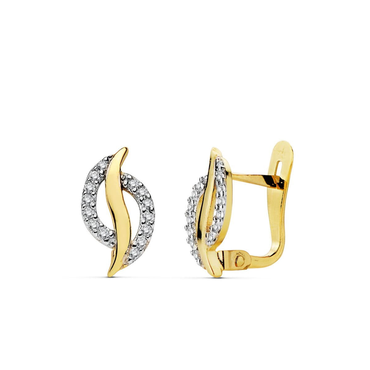 18K PENDIENTES BICOLOR CIRCONITA 12X7 MM CIERRE CATALAN