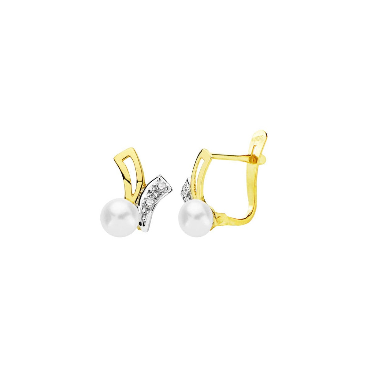 18K PENDIENTES BICOLOR PERLA 11X8 MM CIERRE CATALAN
