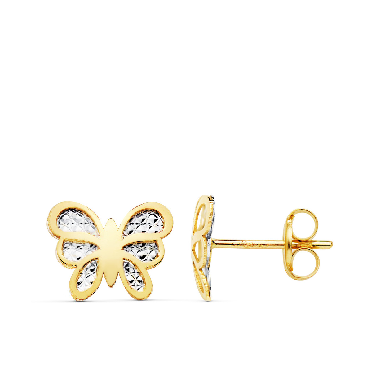 18K PENDIENTES MARIPOSA BICOLOR 10X8 MM CIERRE CIERRE PRESION