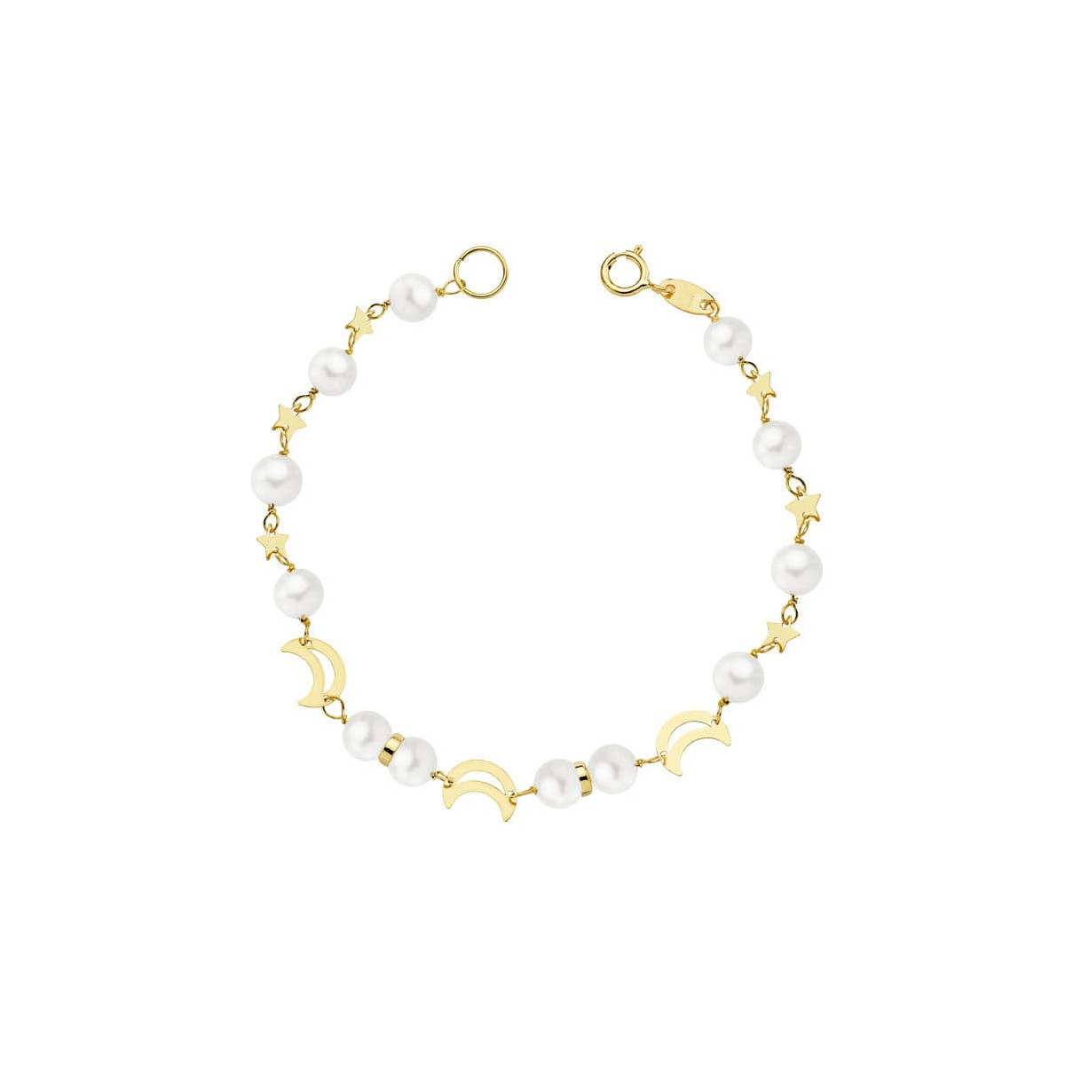 18K PULSERA ORO AMARILLO COMUNION PERLA 5 MM 17CM
