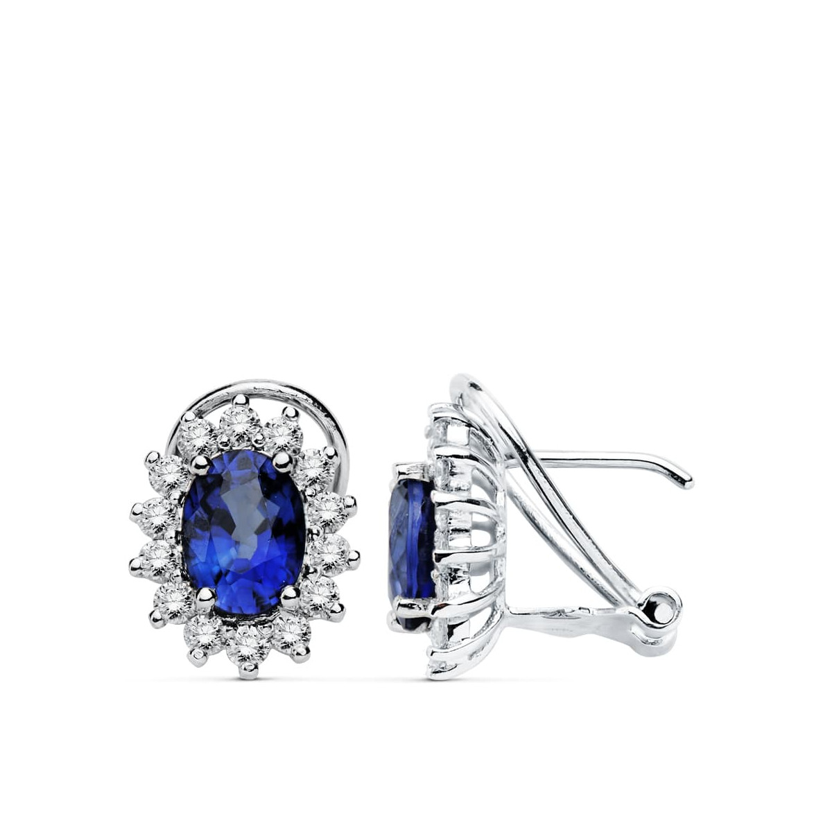 18K PENDIENTES ORO BLANCO DIAMANTES DE LABORATORIO Y ZAFIRO DIFUSION 7X5 MM 1,96 QTS 0,580 QTS VS2-G. CIERRE OMEGA 11,5X9,5 MM
