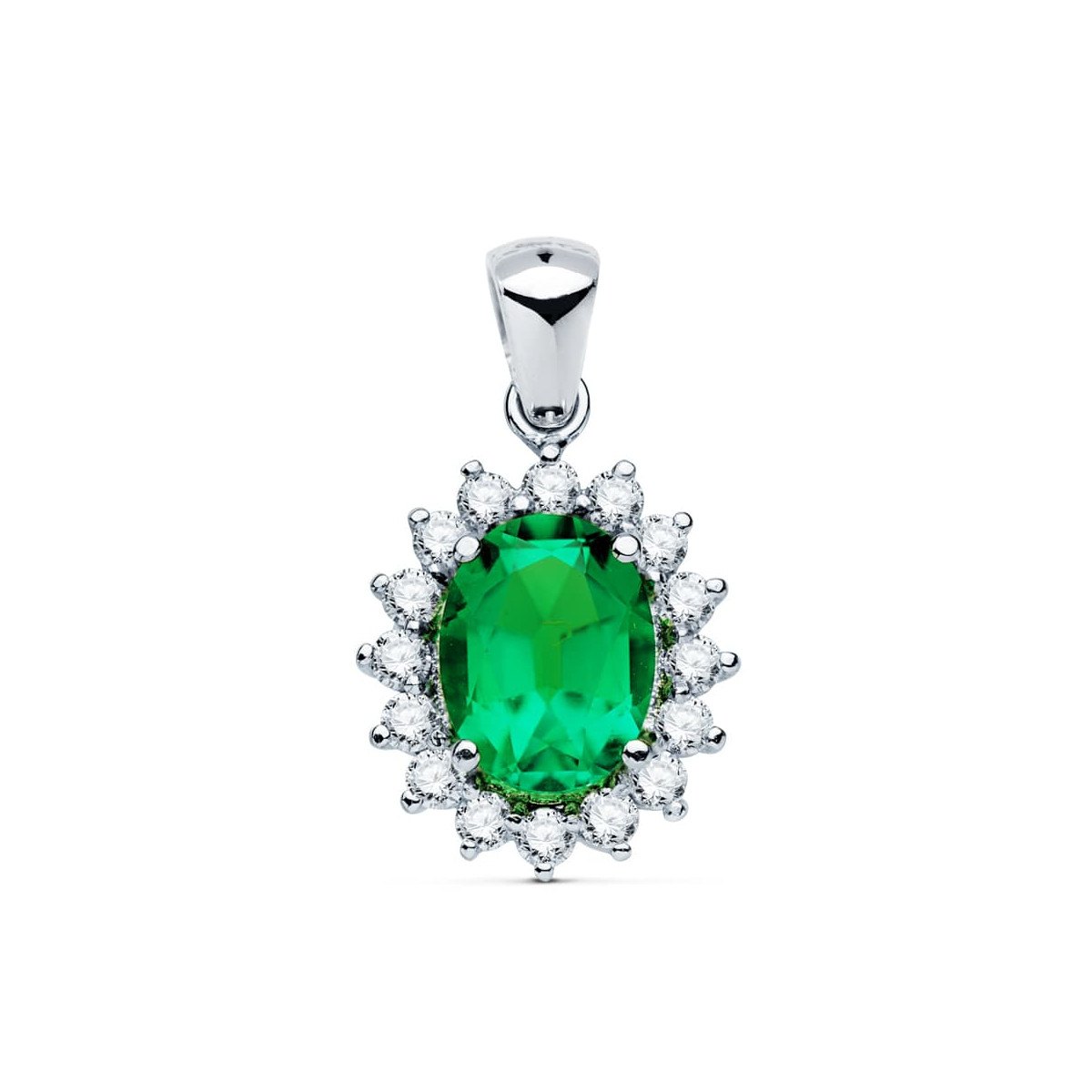 18K COLGANTE ORO BLANCO ESMERALDA RECRISTALIZADA 9X7 MM 1,74 QTS. DIAMANTES LABORATORIO VS2-G 0,52 QTE 14X12 MM