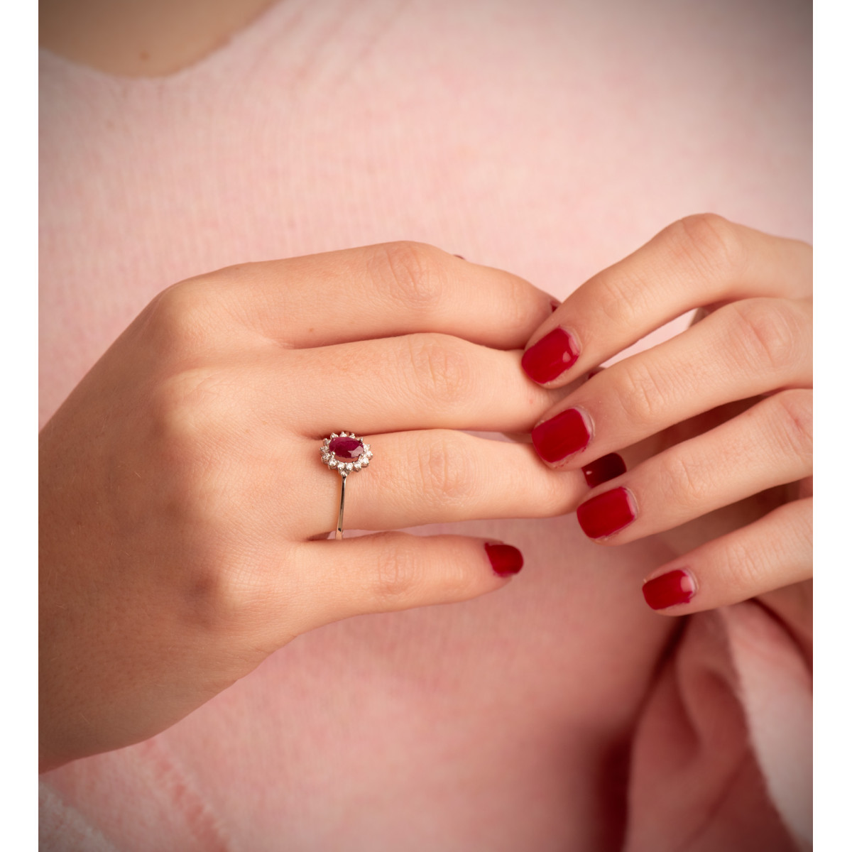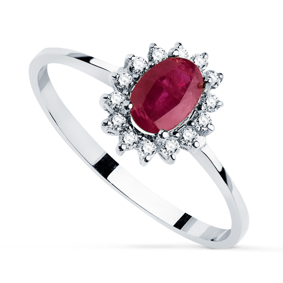 18K SORTIJA ORO BLANCO RUBI 6X4 MM 0,55 QTS. DIAMANTES LABORATORIO VS2-G 0,14 QTS. 9,5X8 MM