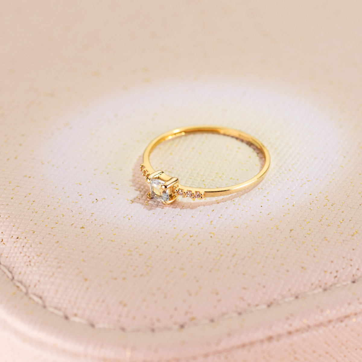 18K SORTIJA ORO AMARILLO 6 DIAMANTES DE LABORATORIO 0,030QTS. G-VS2 AGUAMARINA 3X3MM CUERPO 1MM