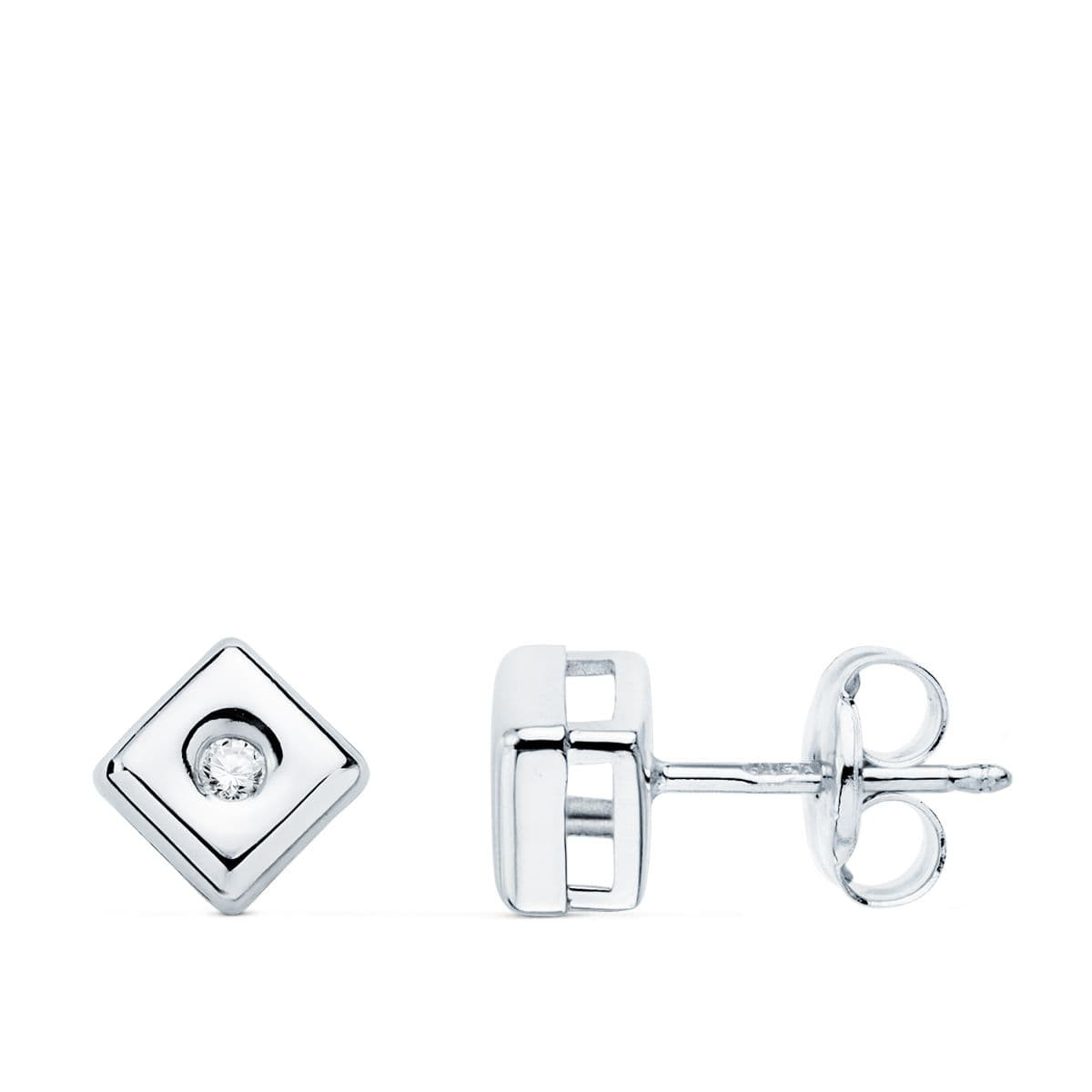 18K PENDIENTES CHATON CUADRADO ORO BLANCO DIAMANTES LABORATORIO 0,040 QTS. G-VS2 CIERRE PRESION 5,5 MM