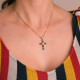 18K CRUZ ORO AMARILLO DIAMANTE LABORATORIO 0,045 QTS. VS2-G ZAFIROS DIFUSION 6X4 MM 3,10 QTS. VS2-G 28X19 MM