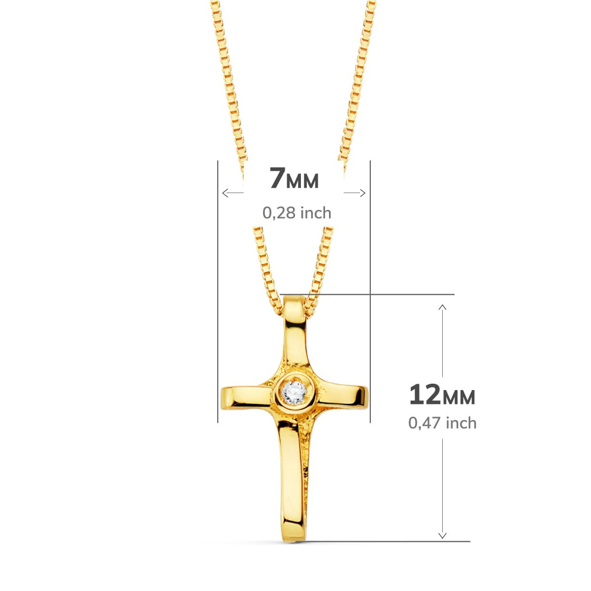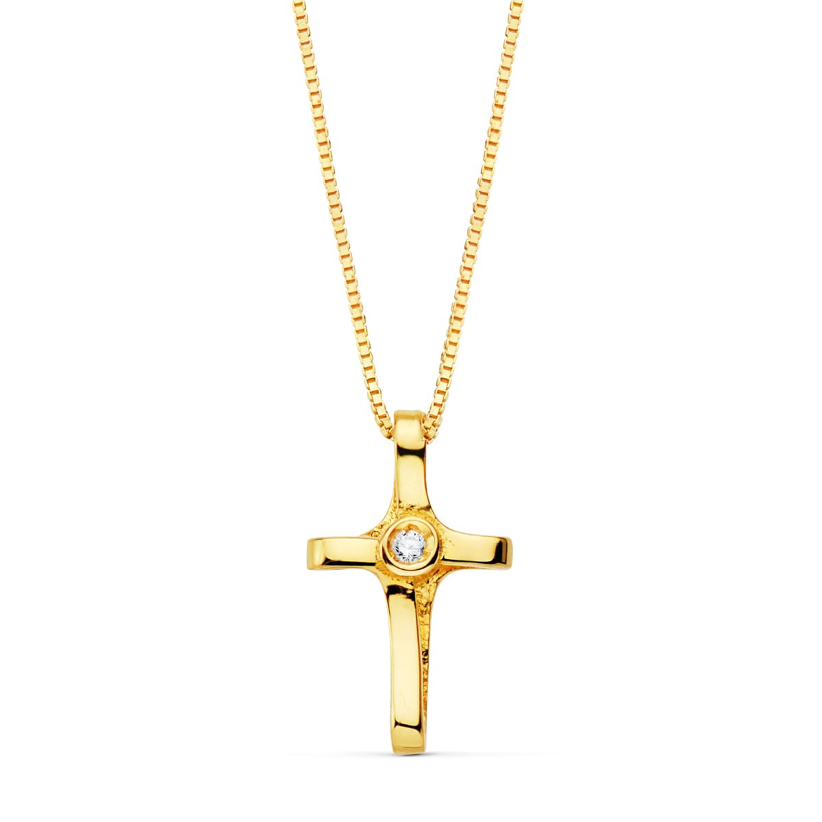 18K COLLAR ORO AMARILLO CRUZ 12X7 MM 1 DIAMANTE LABORATORIO 0,010 QT.CADENA VENECIANA 45CM G-VS2