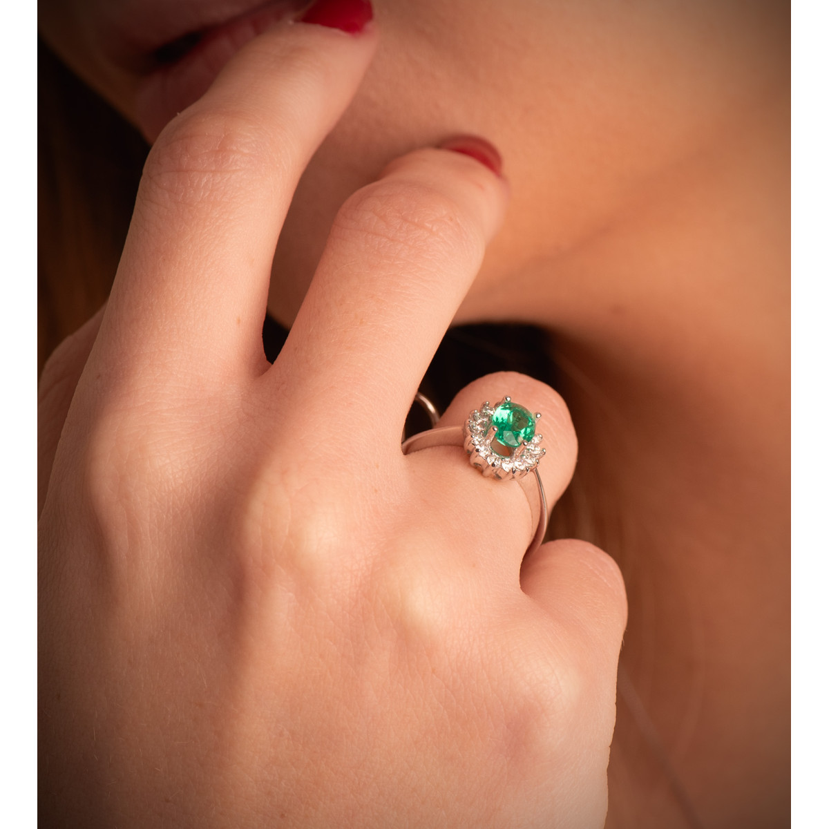 18K SORTIJA ORO BLANCO DIAMANTES LABORATORIO Y ESMERALDA RECRISTALIZADA 7X5 MM 0,75 QT 0,290 QTS. VS2-G 11,5X9,5 MM