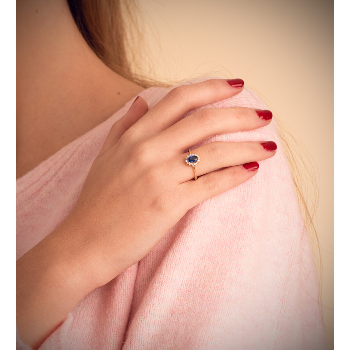 18K SORTIJA ORO AMARILLO DIAMANTES LABORATORIO 0,140 QTS. VS2-G 9 ZAFIRO DIFUSION 6x4 MM 0,62 QTS. , 5X8 MM
