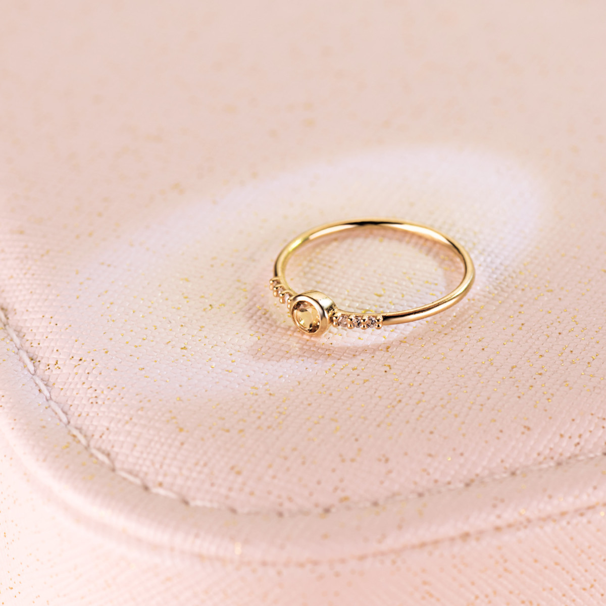 18K SORTIJA ORO AMARILLO 6 DIAMANTES DE LABORATORIO 0,030 QTS. G-VS2. CITRINO 3 MM