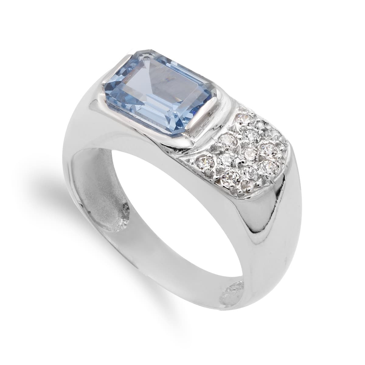 18K SORTIJA ORO BLANCO CON AGUAMARINA Y CIRCONITAS. ANCHO: 8 MM